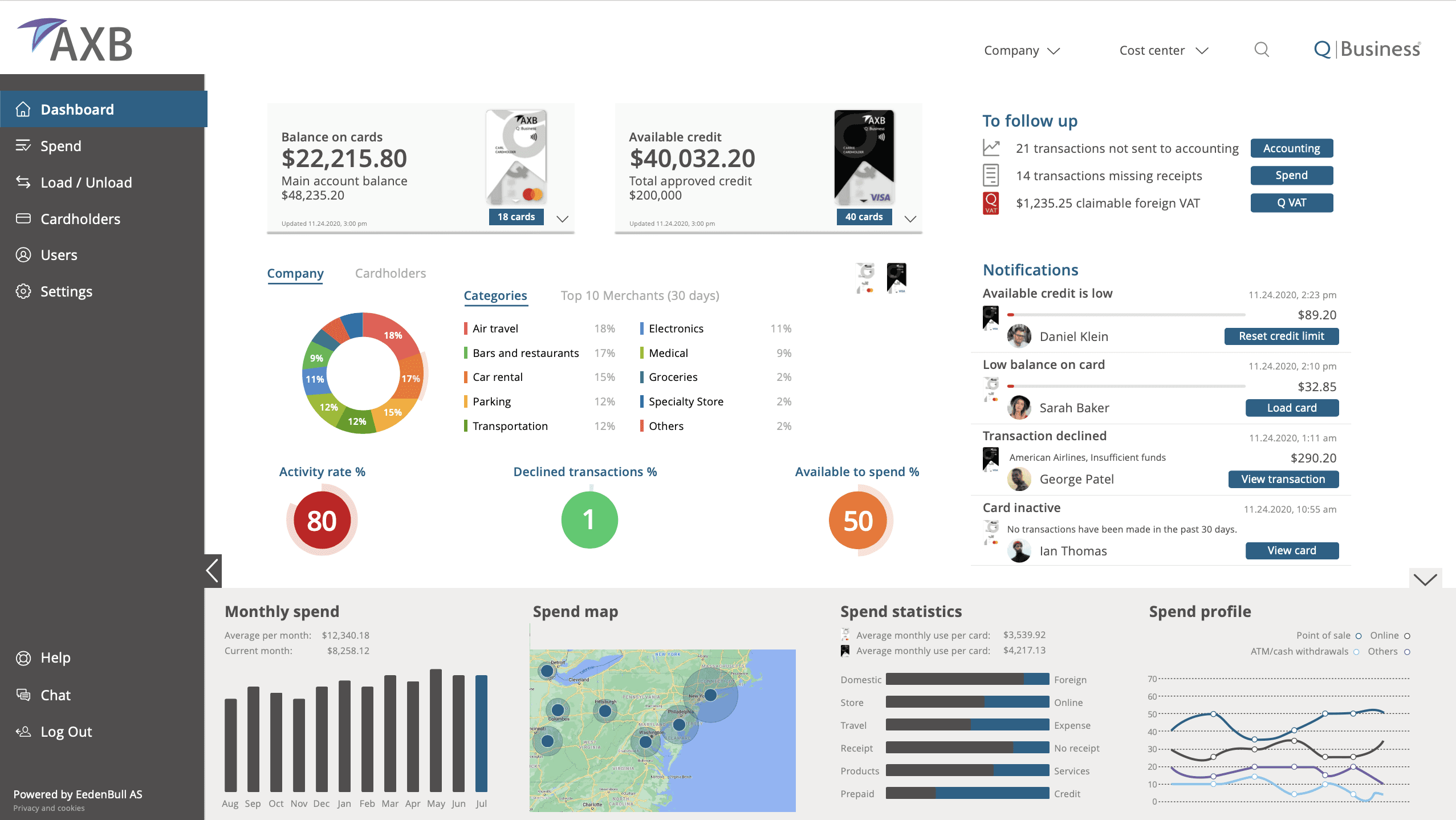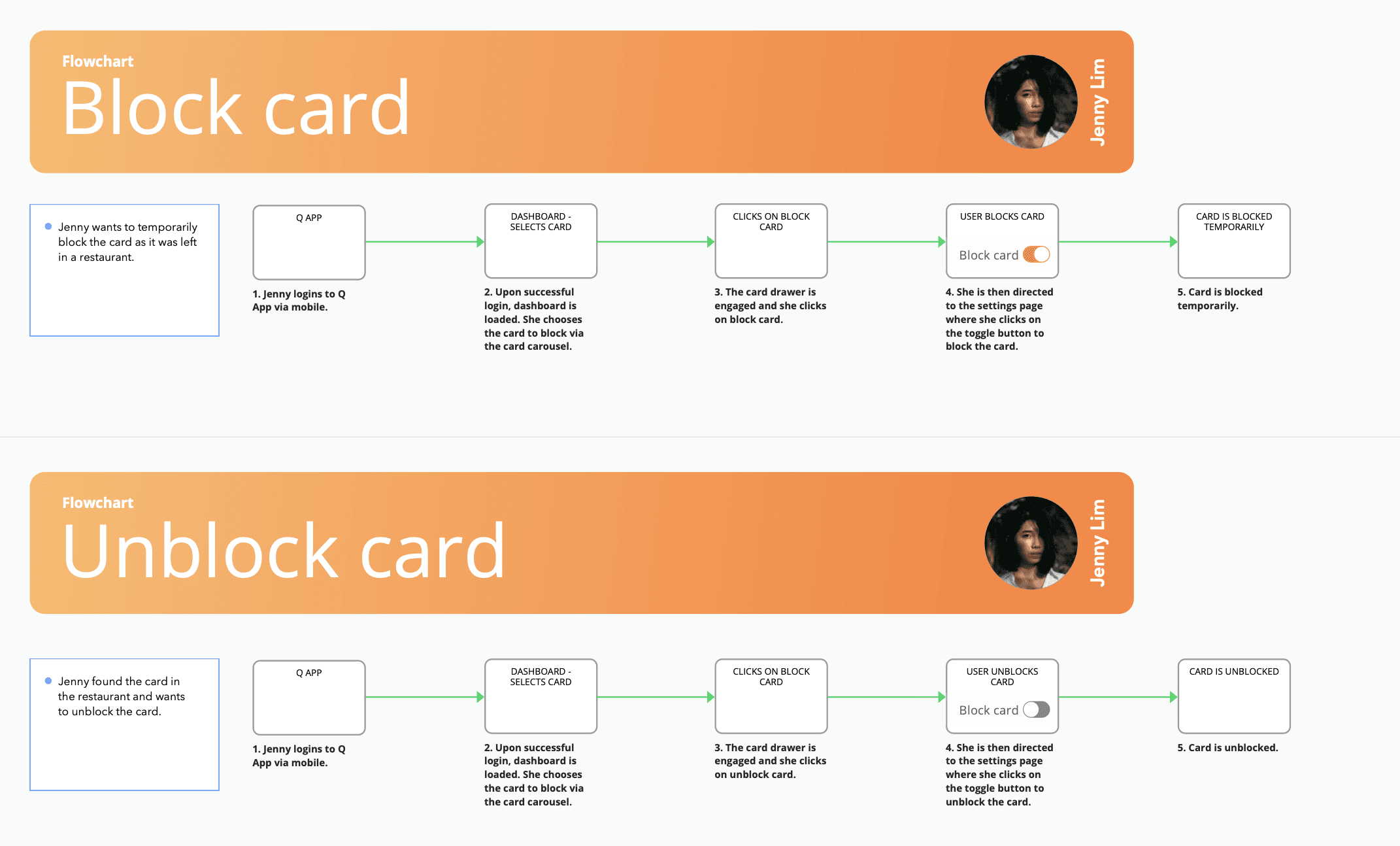 Ability to block cards, request cards, flag transactions