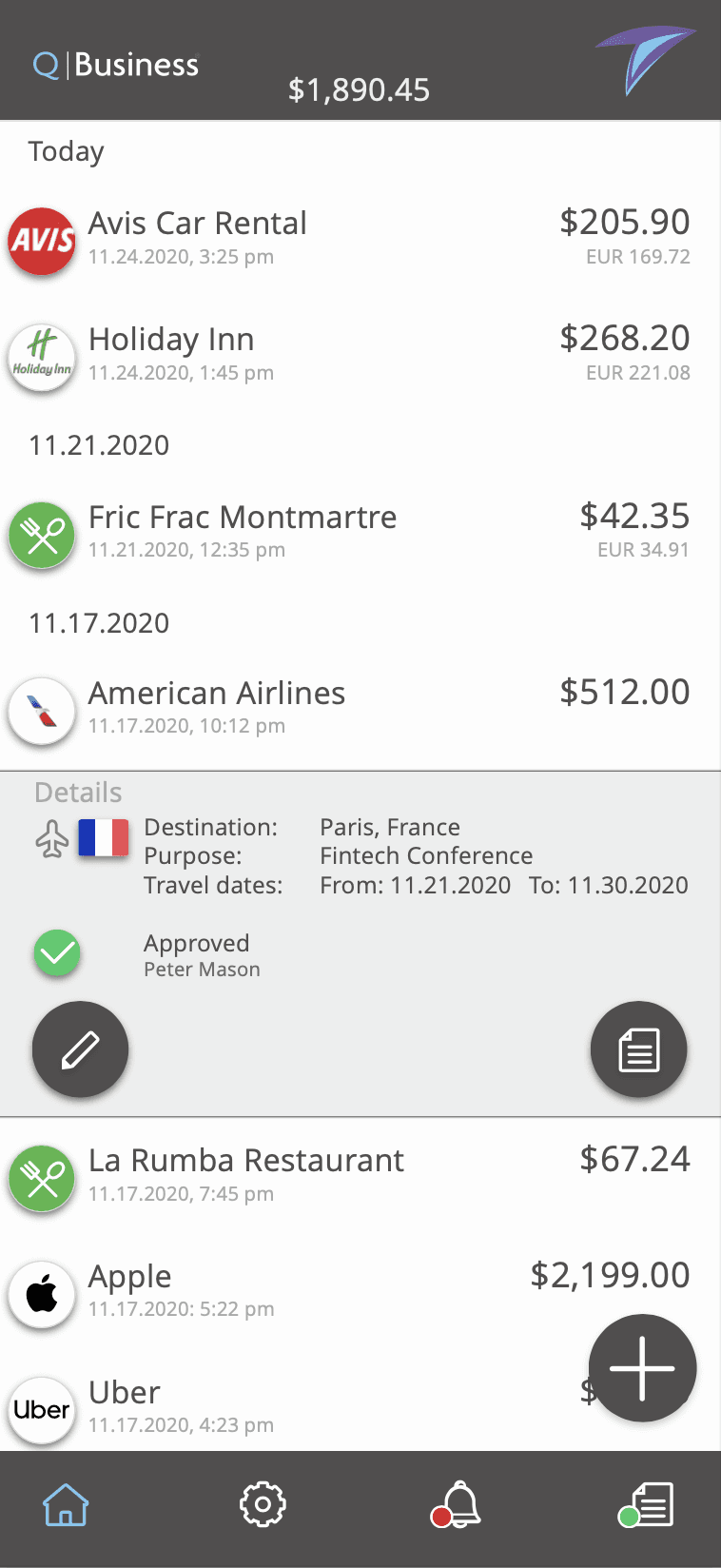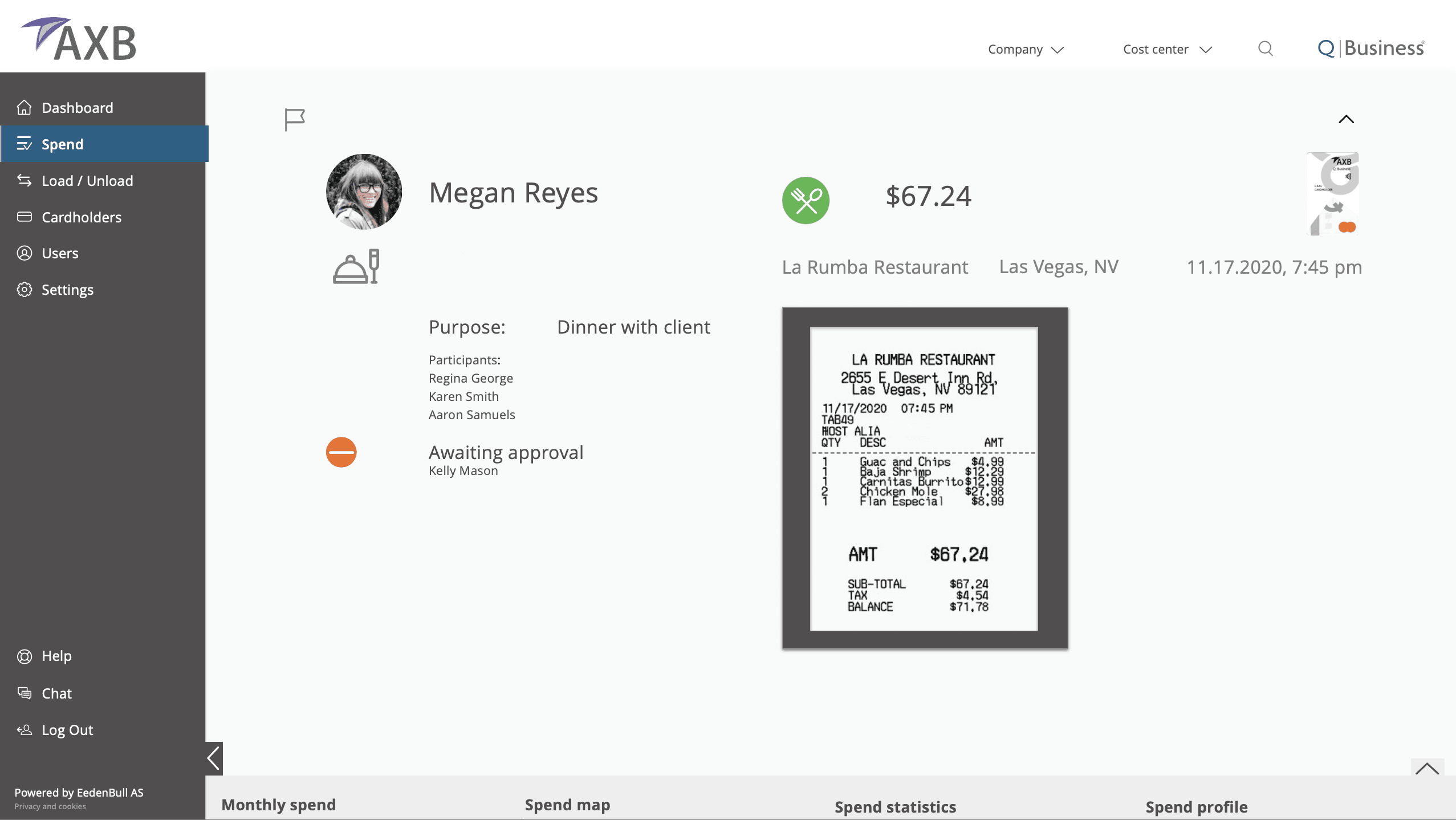 Ability to see Spend details, request follow ups, receipts, or flag for review