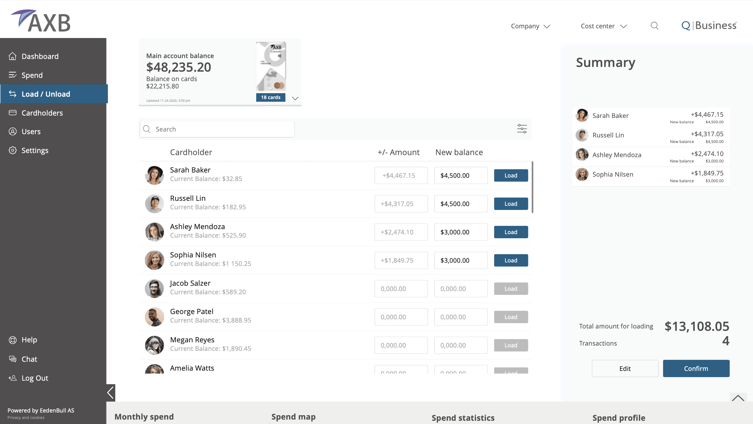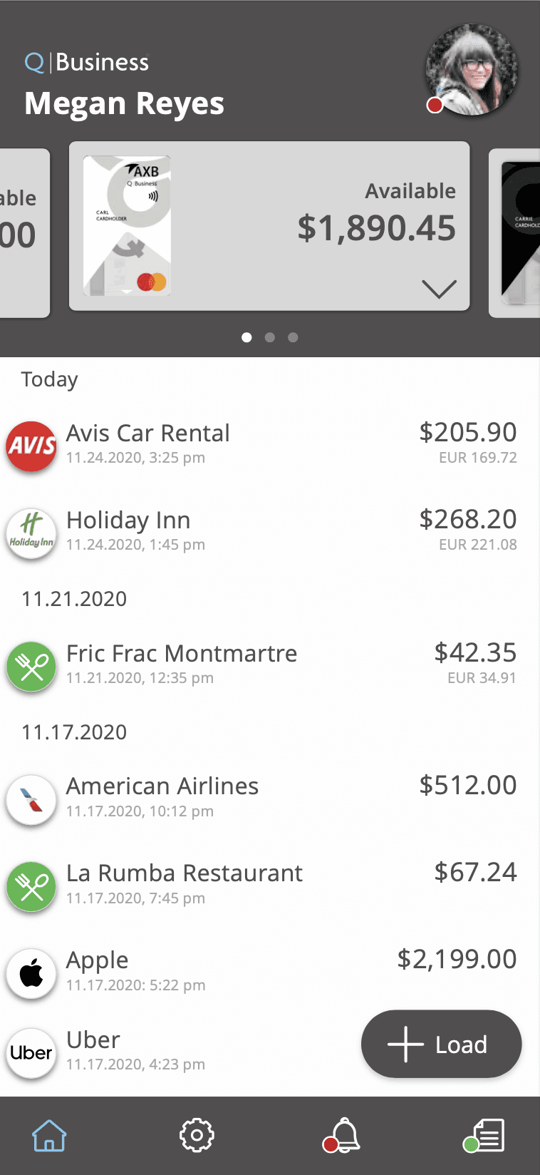 View each card's balance and tagged cardholder