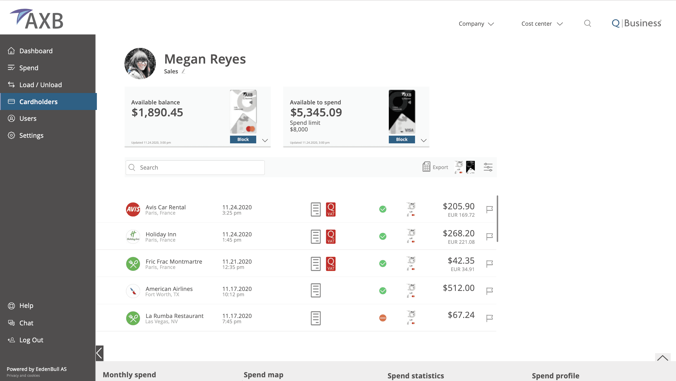 View all transactions and expenses made by cardholder