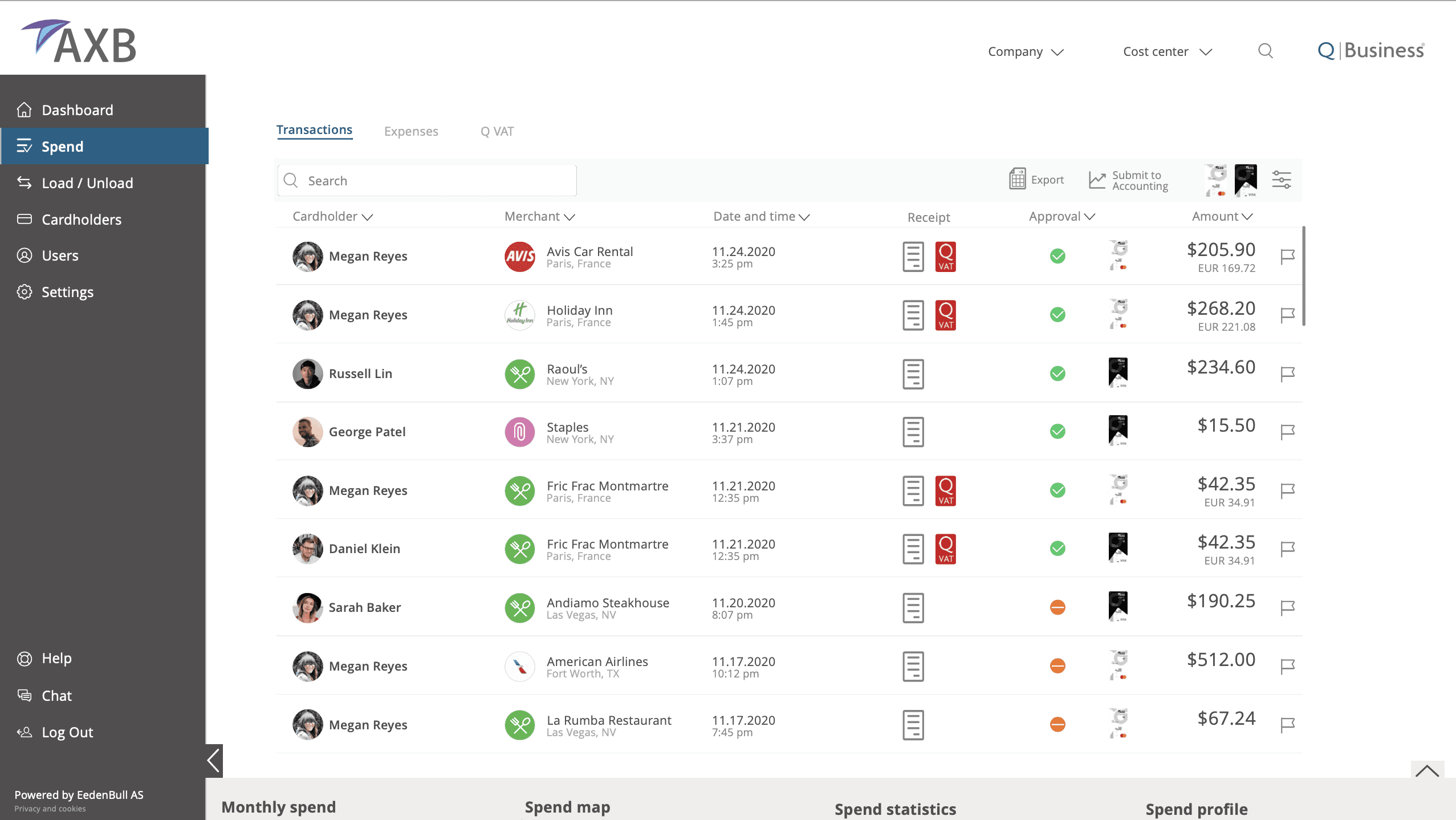Ability to filter by card type, export reports and submit Spend to accounting