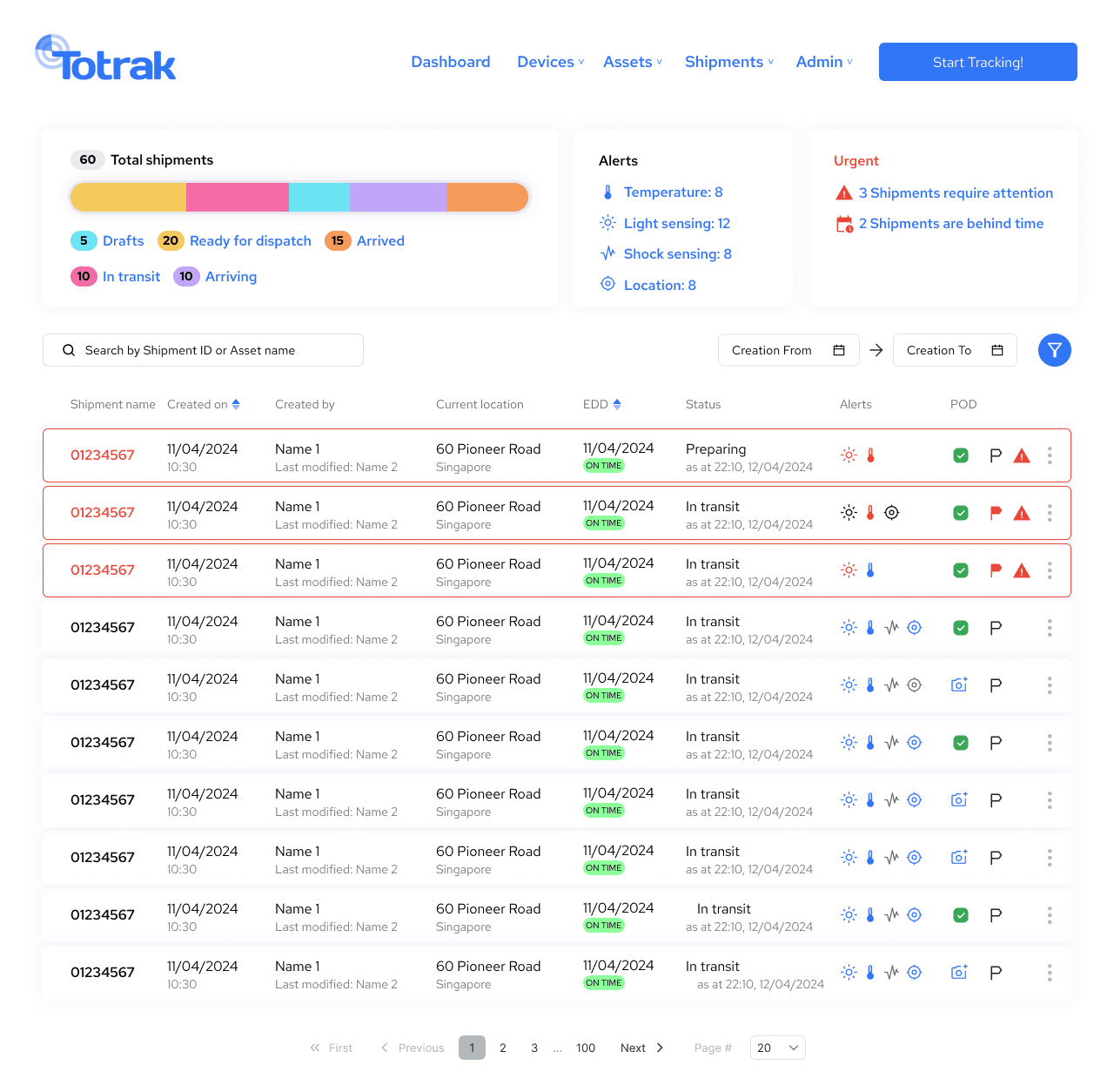 Shipment Dashboard + List